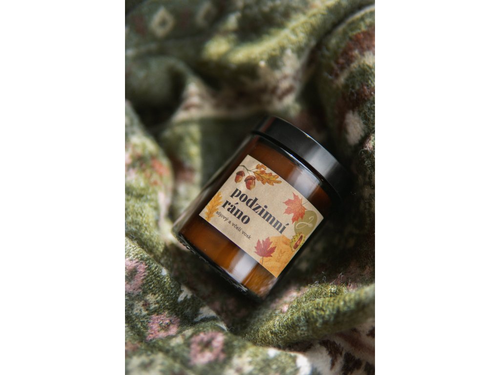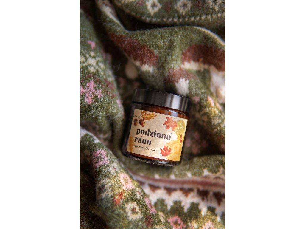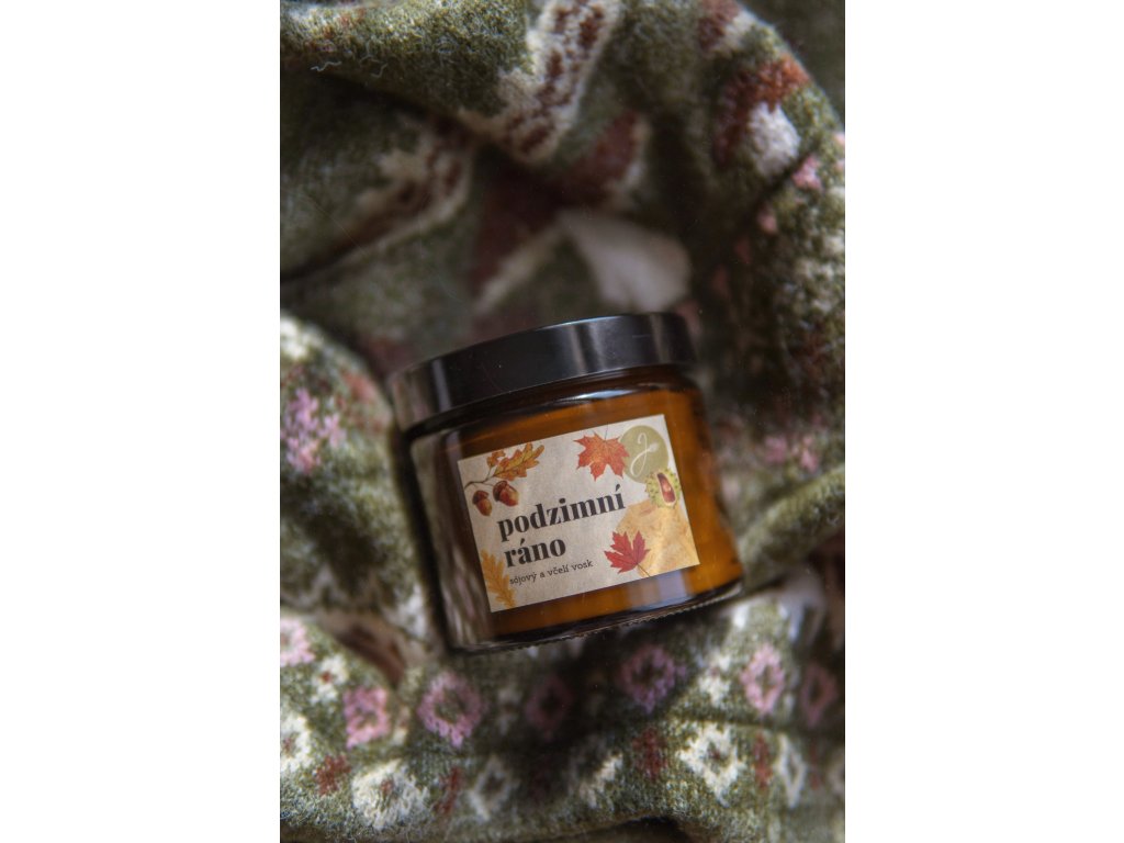 Přírodní svíčka ze sójového a včelího vosku, která voní jako Podzimní ráno. Jemné, sladké tóny karamelu, vanilky a skořice projasní a zpříjemní (nejen) podzimní dny. Ať už si ji zapálíte po návratu ze sychravé procházky, nebo jen tak - pro radost - Podzimní ráno vám bude dělat voňavého společníka při každé příležitosti.